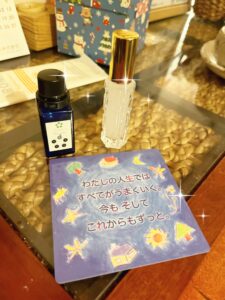 ぴったりの香りを選び、ミニアロマスプレーにしてお渡ししています。